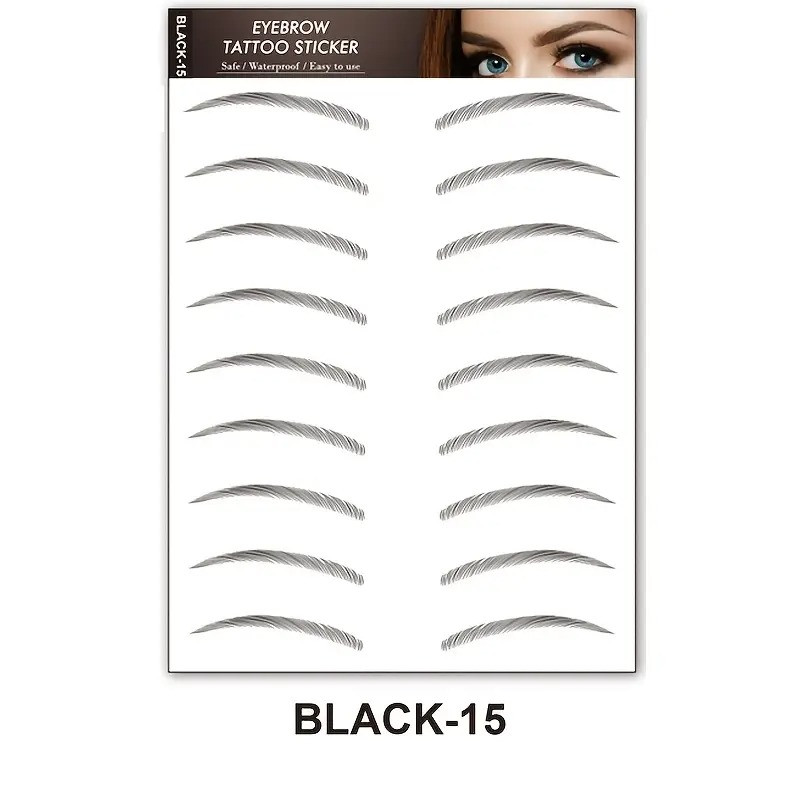 Реалістичні наклейки для татуювання брів чорні 9 пар для татуажу вдома Чорний-15