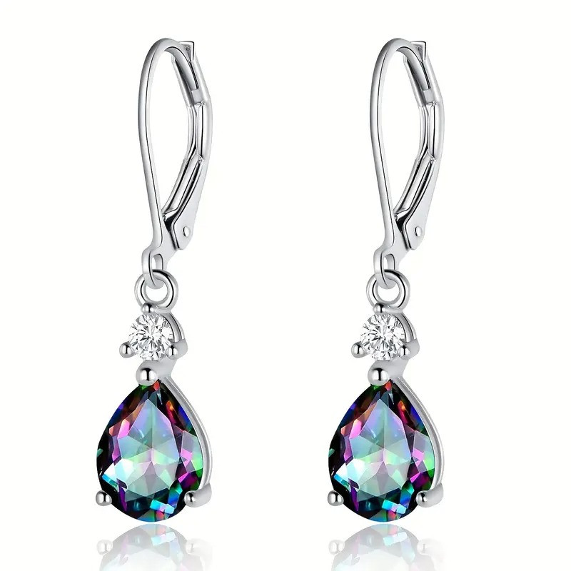 Сріблясті сережки-кільця з підвіскою у вигляді краплі з райдужним кристалом, 3.2 см AurumLux018