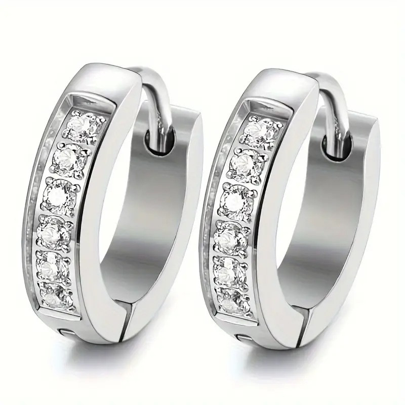 Сережки-кільця виготовлені з нержавіючої сталі сріблястого кольору та прикрашені вставкою з білого кубічного цирконію. Універсальний дизайн підходить як чоловікам, так і жінкам, вдало поєднується зі стилем хіп-хоп і панк.